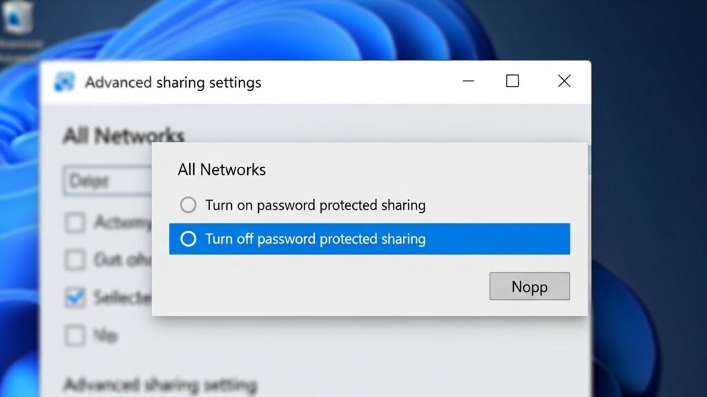 2. 네트워크 설정 > 암호 보호 공유 끄기