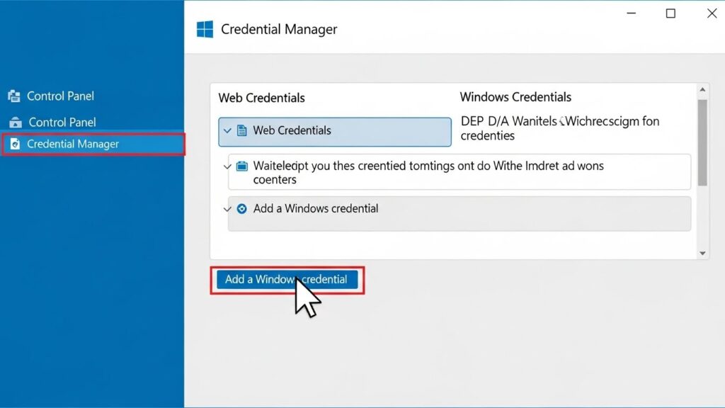 4. 목록 아래쪽에 [Windows 자격 증명 추가] 버튼을 누르세요.