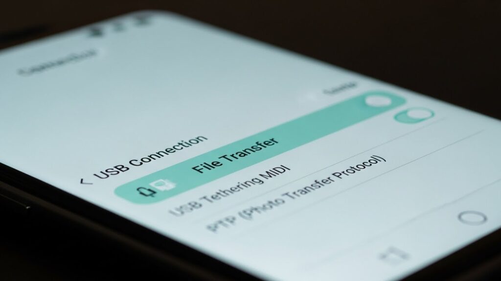 - 옵션 변경: ‘충전’에서 ‘파일 전송’으로 전환
