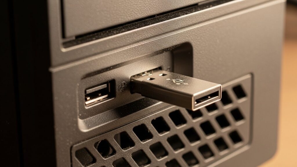 • ✔️ 컴퓨터 본체 앞, 뒤 USB 포트에 USB 메모리가 꽂혀 있는지 확인한다.